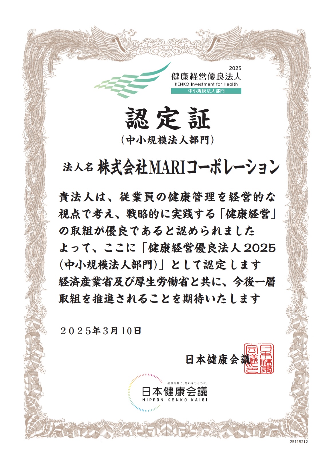 - 「健康経営優良法人2025」に認定されました。